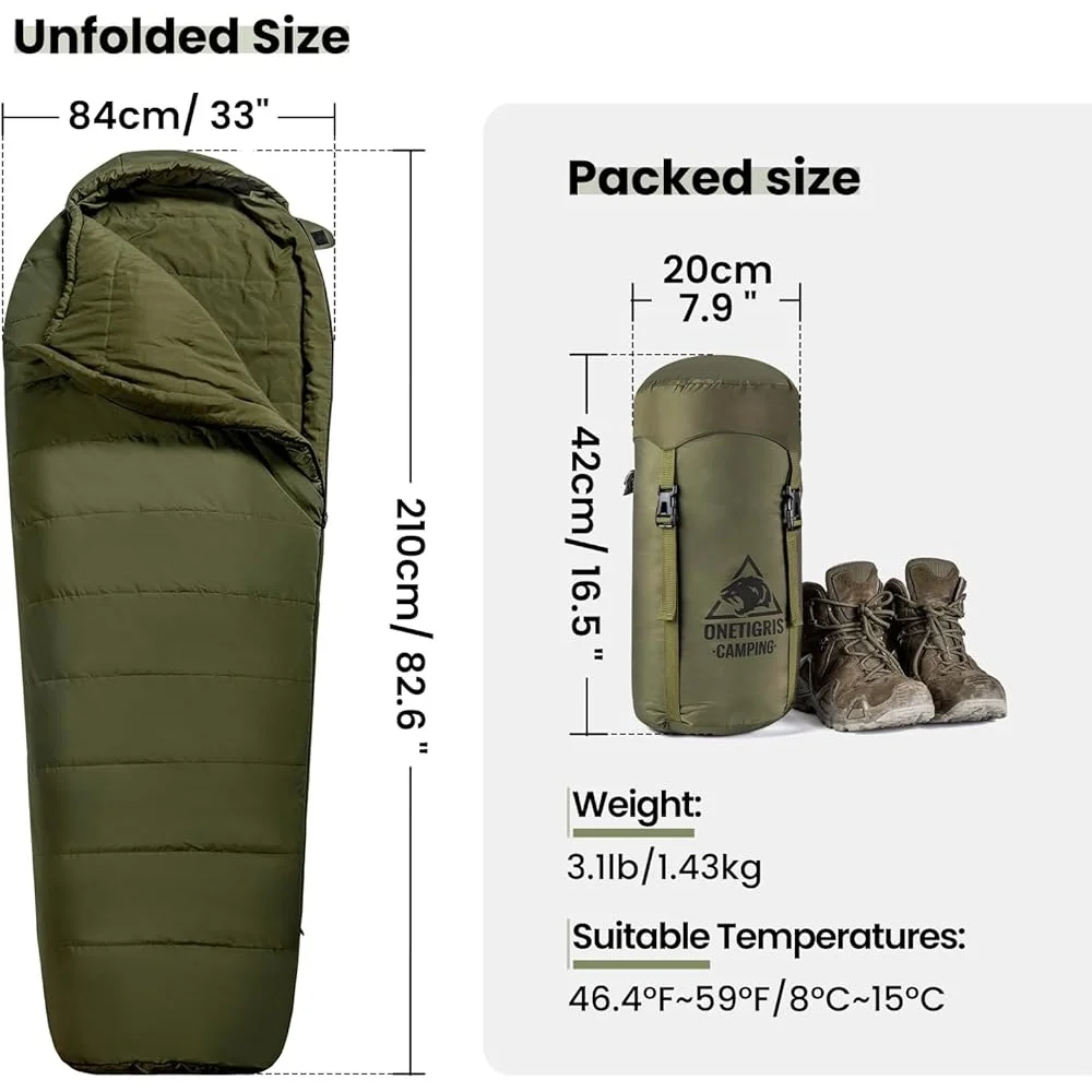 Mummy Sleeping Bag 3 Season Camping Hiking Gear Lightweight Water Repellent Outdoor Survival Bag with Anti Snag Zippers
