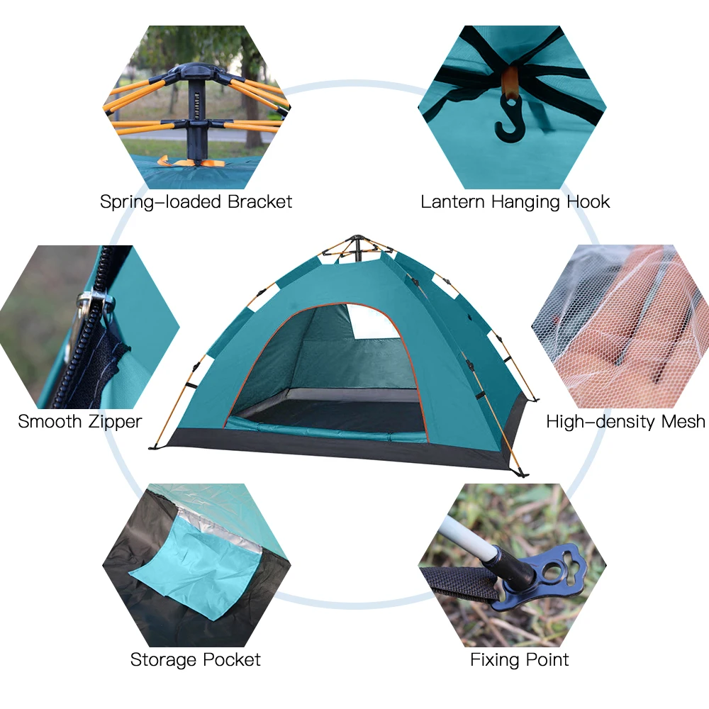 Outdoor Pop Up Tent Water-resistant Portable Instant Camping Tent for 1-2 / 3-4 People Family Tent